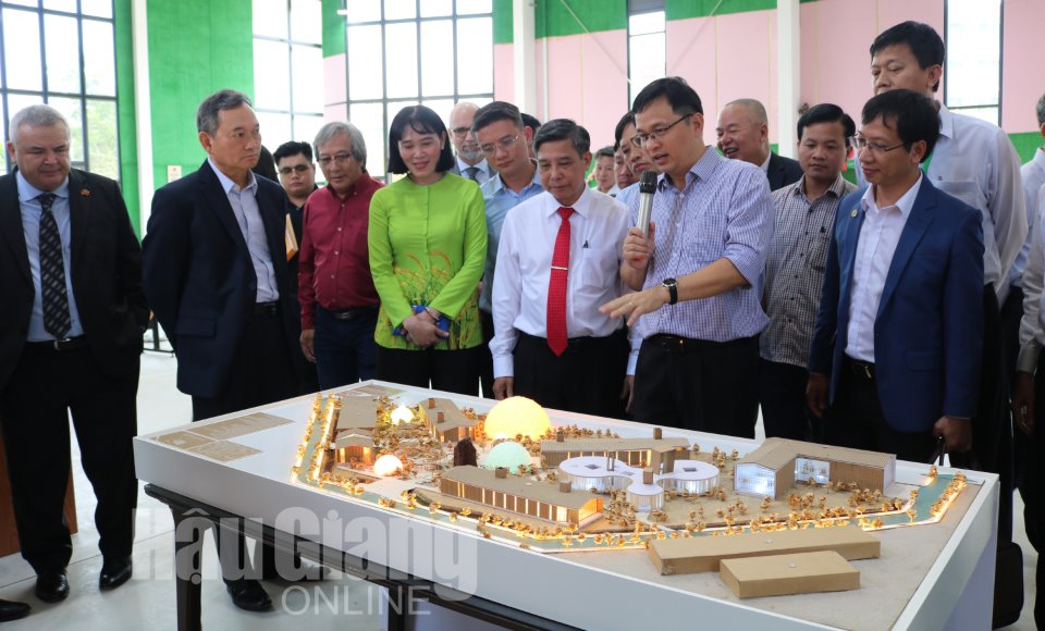Các đại biểu nghe giới thiệu về Khu Công nghệ số tỉnh Hậu Giang.
