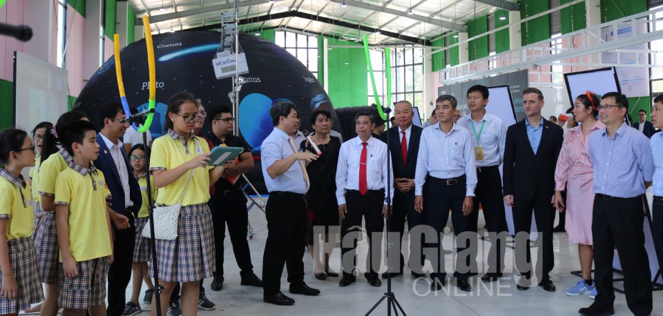 Dịp này, một doanh nghiệp đến từ Canada đã gửi tặng hệ thống lớp học thông minh cho Khu Công nghệ số tỉnh Hậu Giang.