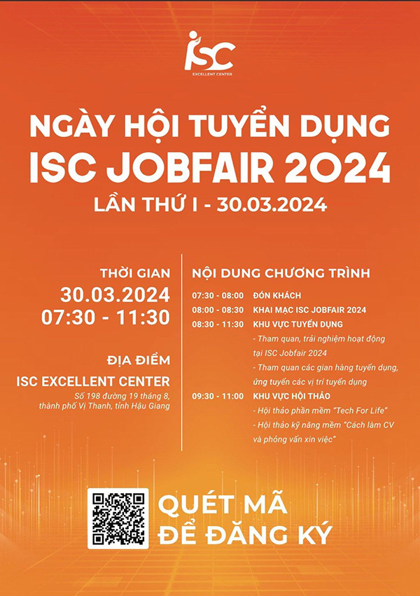 Nhằm đáp ứng nhu cầu tuyển dụng việc làm của các doanh nghiệp đang hoạt động tại Khu công nghệ số Hậu Giang, ISC cùng với các đối tác tổ chức ngày hội việc làm Job Fair lần 1 như sau: